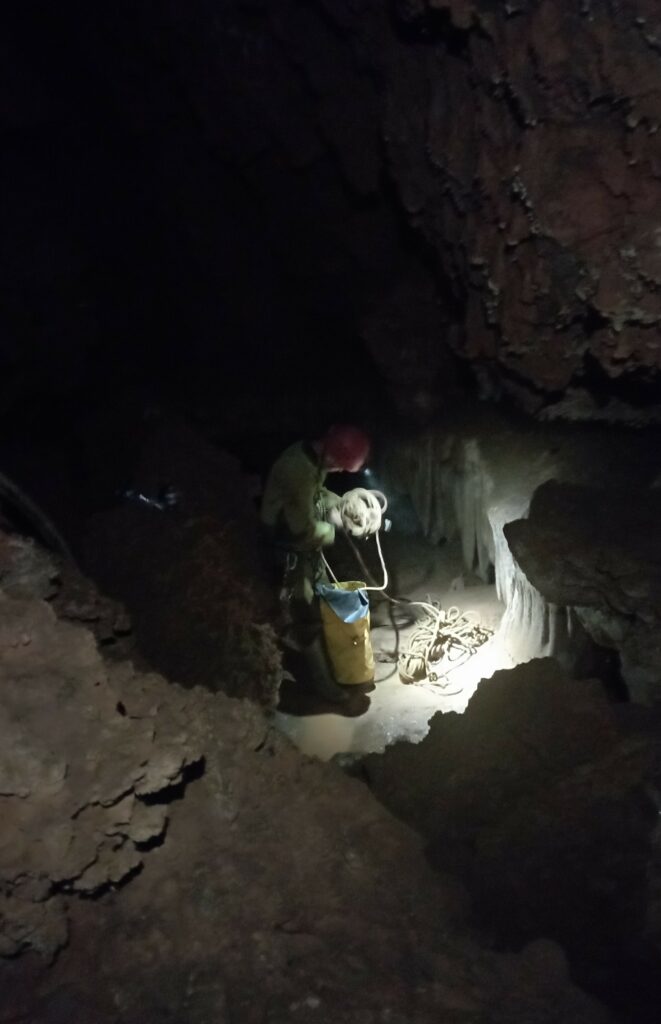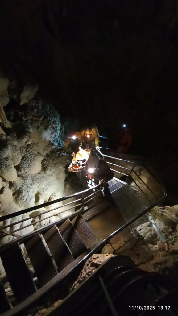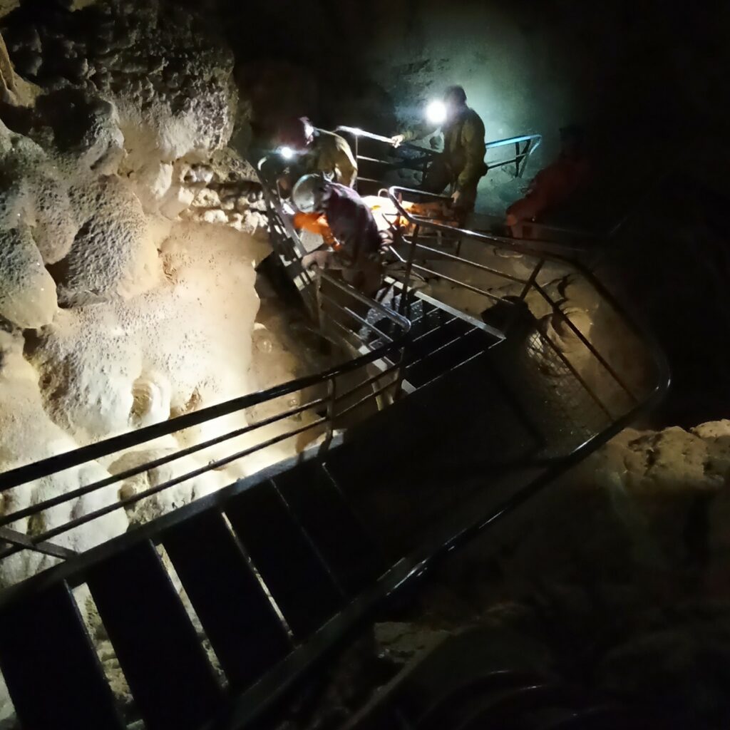 Non un visiteur ne s’est pas égaré dans la grotte de Trabuc, et contrairement à ce que l’on pourrait croire en regardant les photos ce n’est pas une opération d’évacuation de victime.